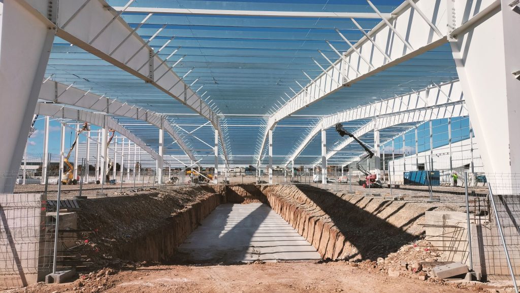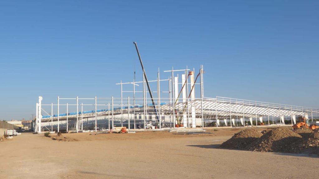 Una estructura singular diseñada en colaboración con la Ingeniería del cliente en pórticos articulados de chapa armada de inercia variable.